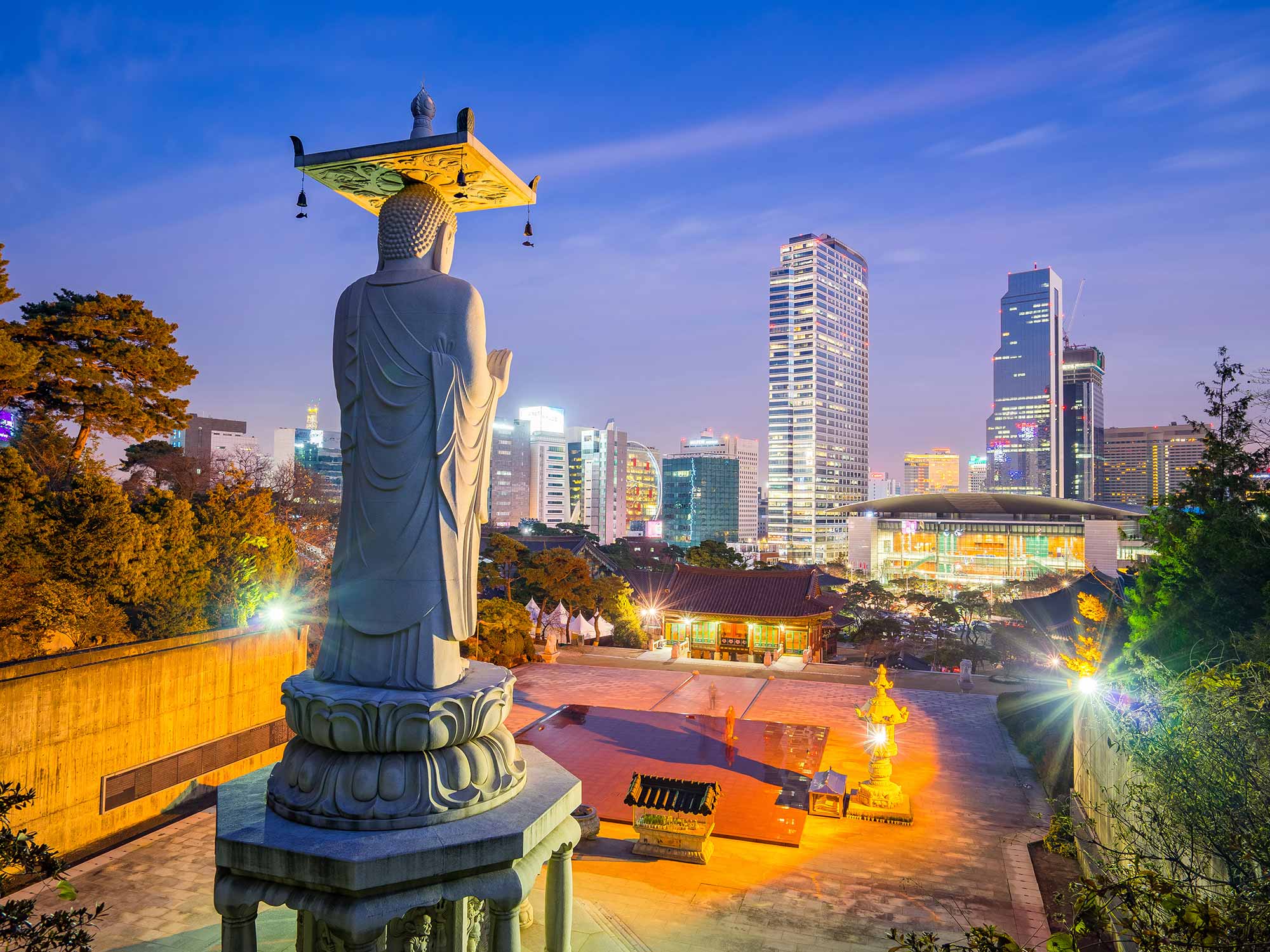 La ville de Séoul est un véritable concentré économique empreint de dynamisme. Elle affiche fièrement son attachement à ses racines, mais également son modernisme. Sous de nombreux aspects, la capitale coréenne est vraiment unique ; très jeune, elle continue de cultiver les traditions, et la vie quotidienne est ponctuée de divertissements. Parmi les lieux à ne pas manquer, on citera le palais Gyeongbokgung, le quartier très branché de Gangam-Gu, ou encore le marché traditionnel d'Insadong. Autant de lieux à parcourir et à admirer à l'occasion d'un séjour à Séoul inoubliable. La ville se découvre et se déguste jour et nuit, tout comme sa très célèbre gastronomie qui mérite le détour.